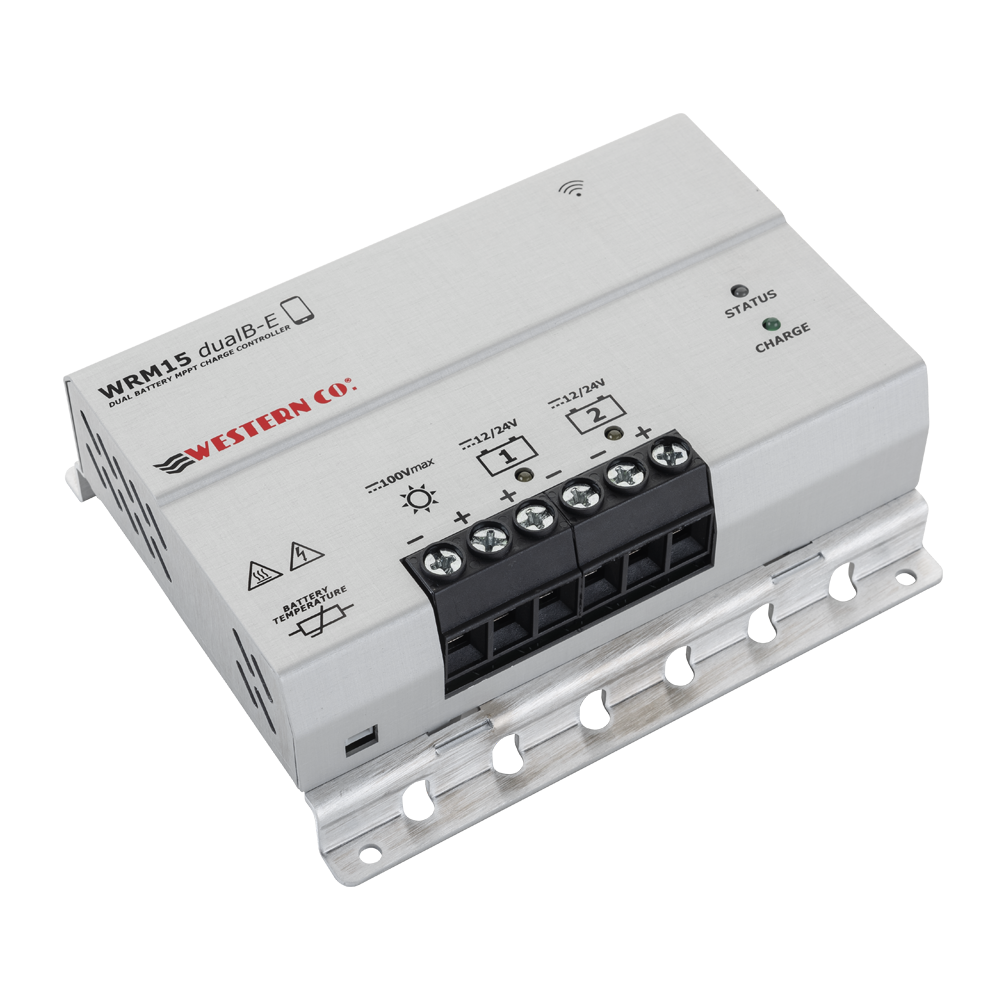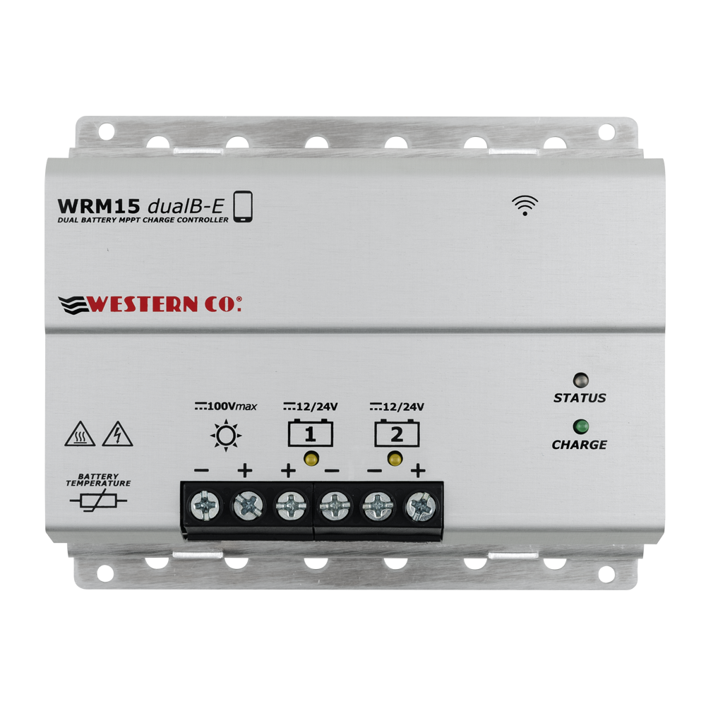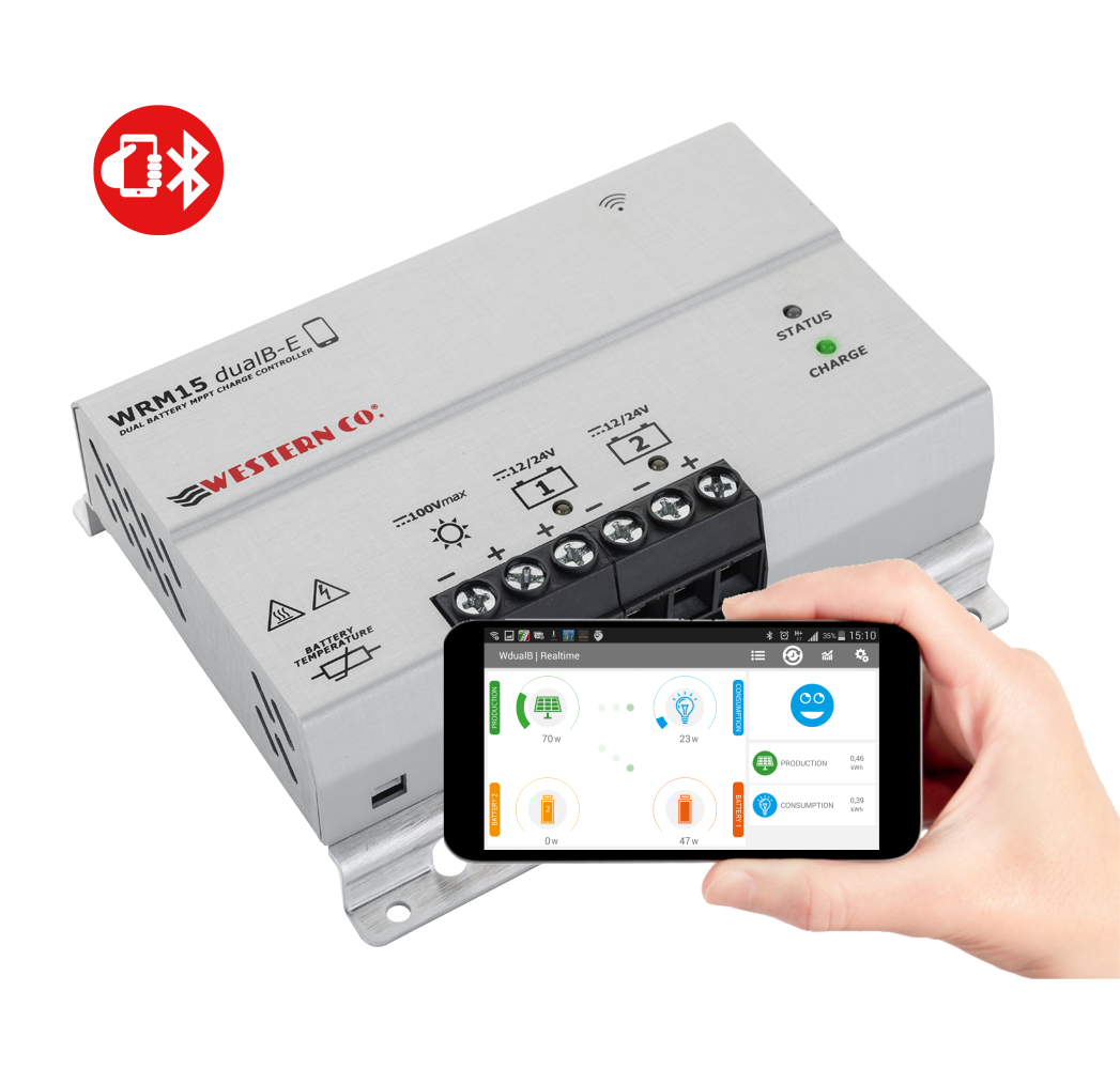 MPPT 15A 12 / 24V Ρυθμιστής φόρτισης διπλής μπαταρίας με δυνατότητα φόρτισης έως και δύο μπαταριών από τα φωτοβολταϊκά πλαίσια και εξοπλισμένος με έλεγχο Bluetooth® μέσω smartphone APP.